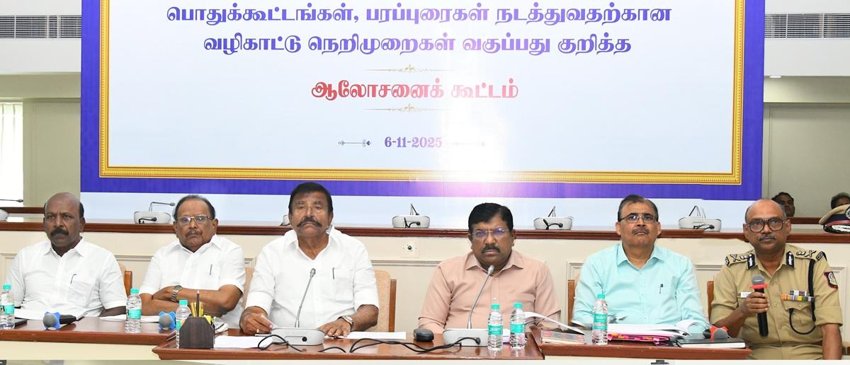 சென்னை: அரசியல் கட்சிப் பேரணிகள், பொதுக்கூட்டங்களுக்கு புதிய கட்டுப்பாடுகள் விதிப்பது தொடர்பாக பல்வேறு பரிந்துரைகளை தமிழக அரசு வழங்கியுள்ளது. கரூரில் கடந்த செப்.27-ம் தேதி தவெக தலைவர் விஜய் பங்கேற்ற பிரச்சாரக் கூட்டத்தில் நெரிசல் ஏற்பட்டு 41 பேர் உயிரிழந்தனர். இதுபோன்ற சம்பவங்கள் மீண்டும் நிகழாமல் தடுக்க, வழிகாட்டு நெறிமுறைகளை வகுக்குமாறு தமிழக அரசுக்கு சென்னை உயர் நீதிமன்றம் சமீபத்தில் அறிவுறுத்தியது. இதன் அடிப்படையில், வழிகாட்டுதல்களை உருவாக்கும் வகையில், முதல்வர் ஸ்டாலின் தலைமையில் சில நாட்களுக்கு முன்பு ஆலோசனைக் கூட்டம் நடந்தது. இதன் தொடர்ச்சியாக, சென்னை தலைமைச் செயலகத்தில் தலைமைச் செயலர் நா.முருகானந்தம் தலைமையில் நேற்று அனைத்துக் கட்சி ஆலோசனைக் கூட்டம் நடைபெற்றது.